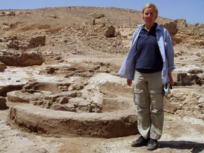 Mönchsmumien bei Luxor ausgegraben Die deutsche Archäologin Ina Eichner steht vor einem Sitzring inmitten der Überreste eines koptischen Klosters.